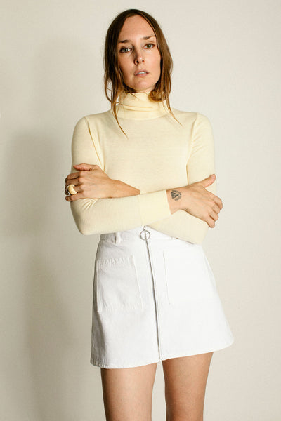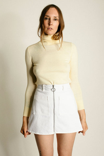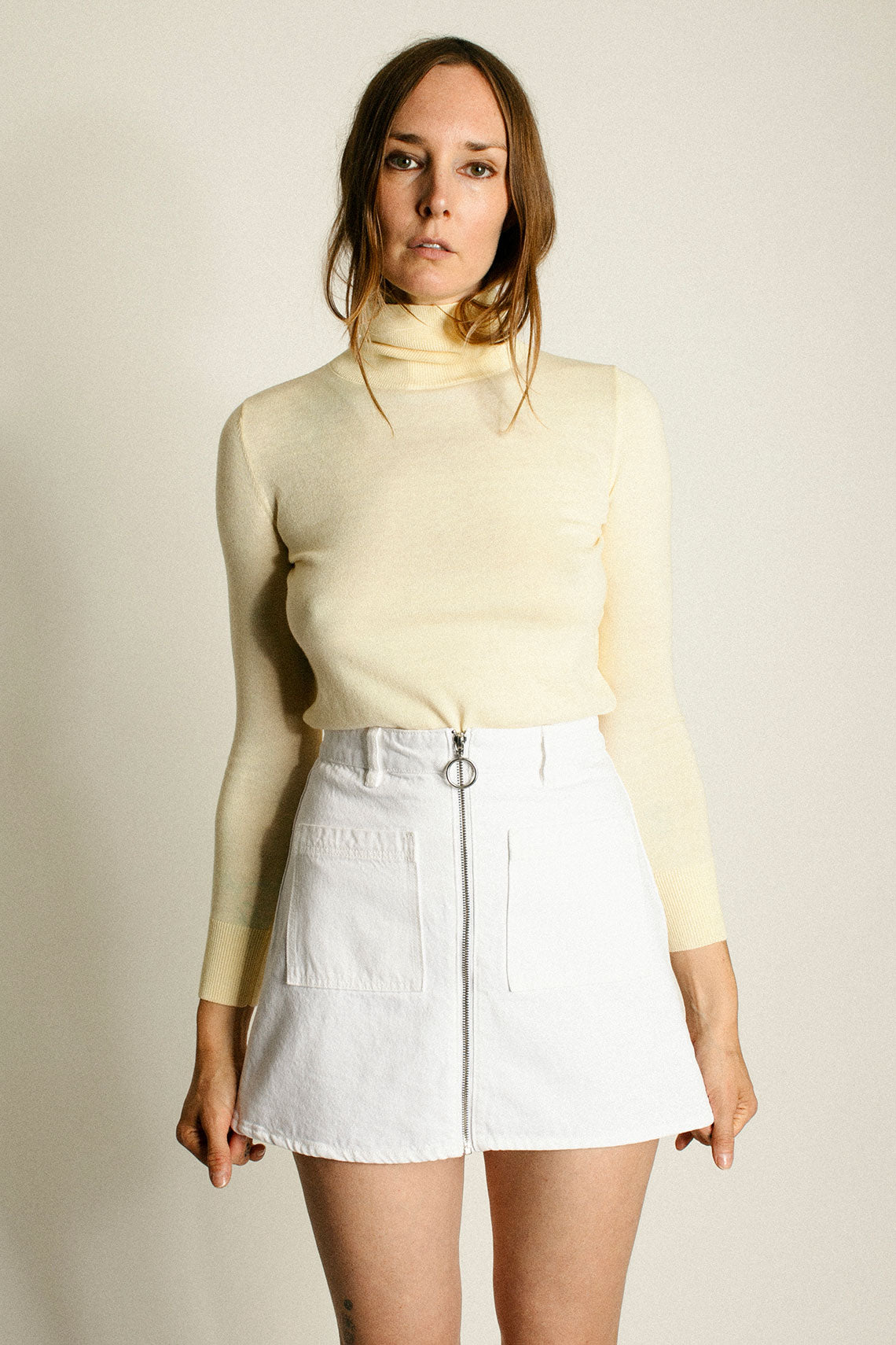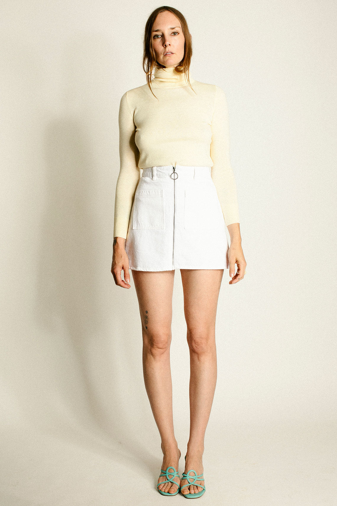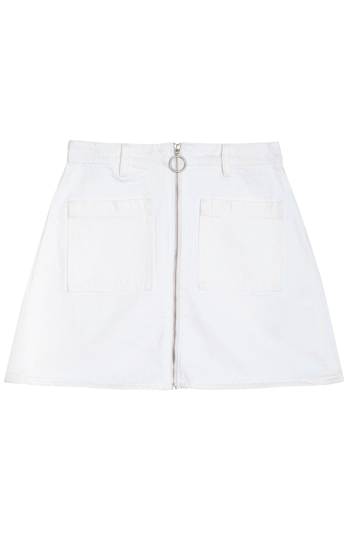 80's inspired zip front denim mini. Fabric is 100% cotton.