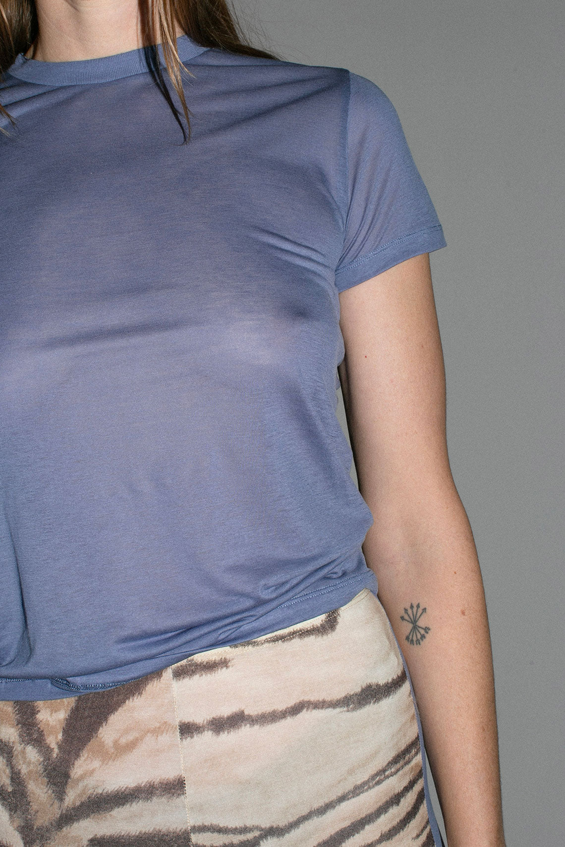 Bamboo crewneck T shirt that's so soft and ever so slightly sheer. Fabric is 100% Bamboo Lyocell.