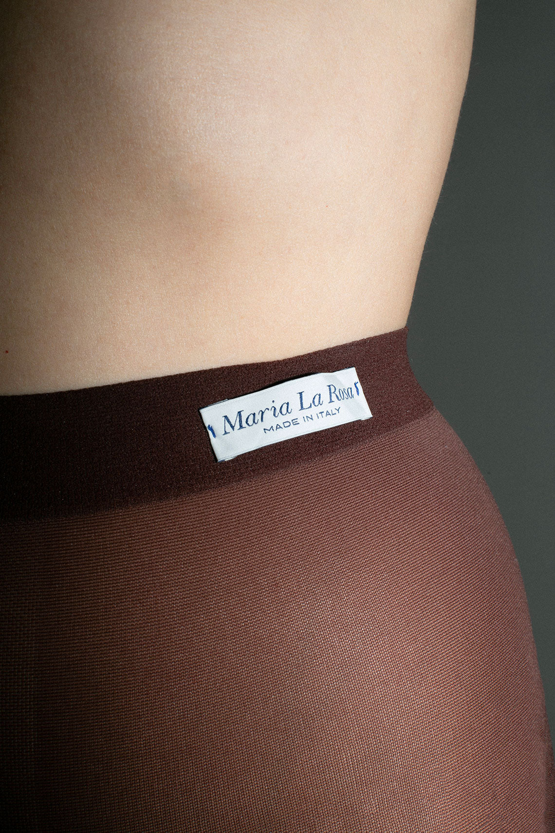 High waist lycra tights with an elastic waistband with the Maria La Rosa logo.  Fabric is 90% polyamide, 10% elastane.  Made in Italy.