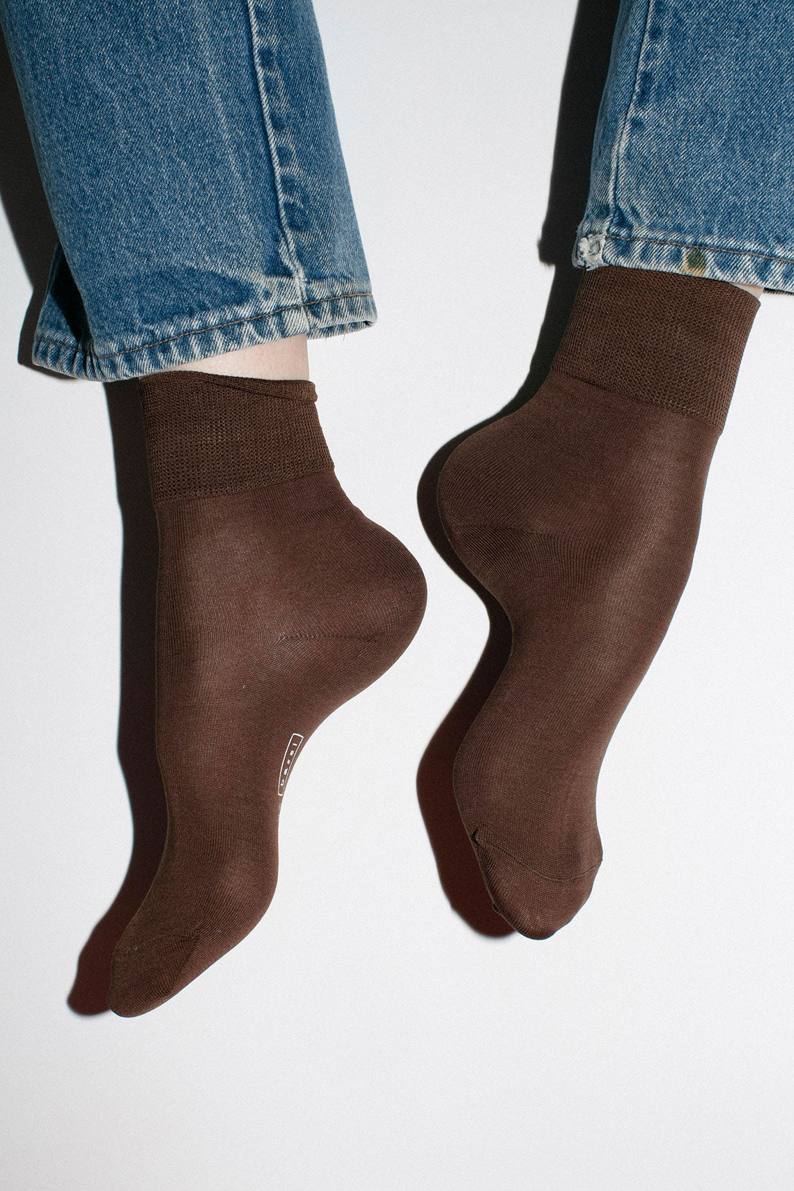Essential everyday crew sock with a wide ribbed cuff that hits right above the ankle. Fabric is a mercerized cotton. Available in multiple colors.
