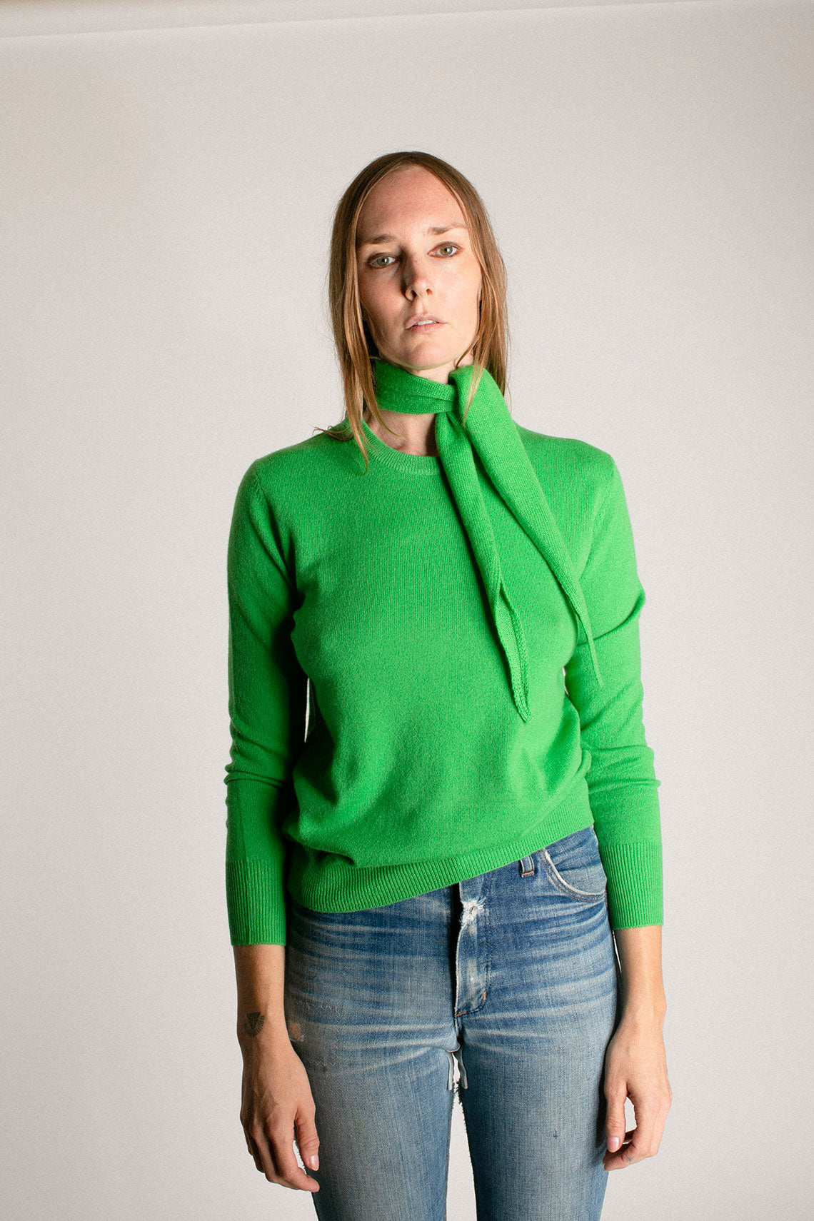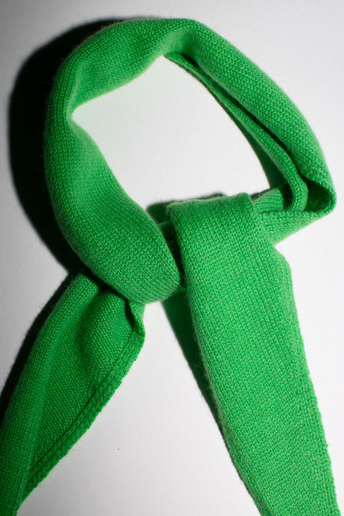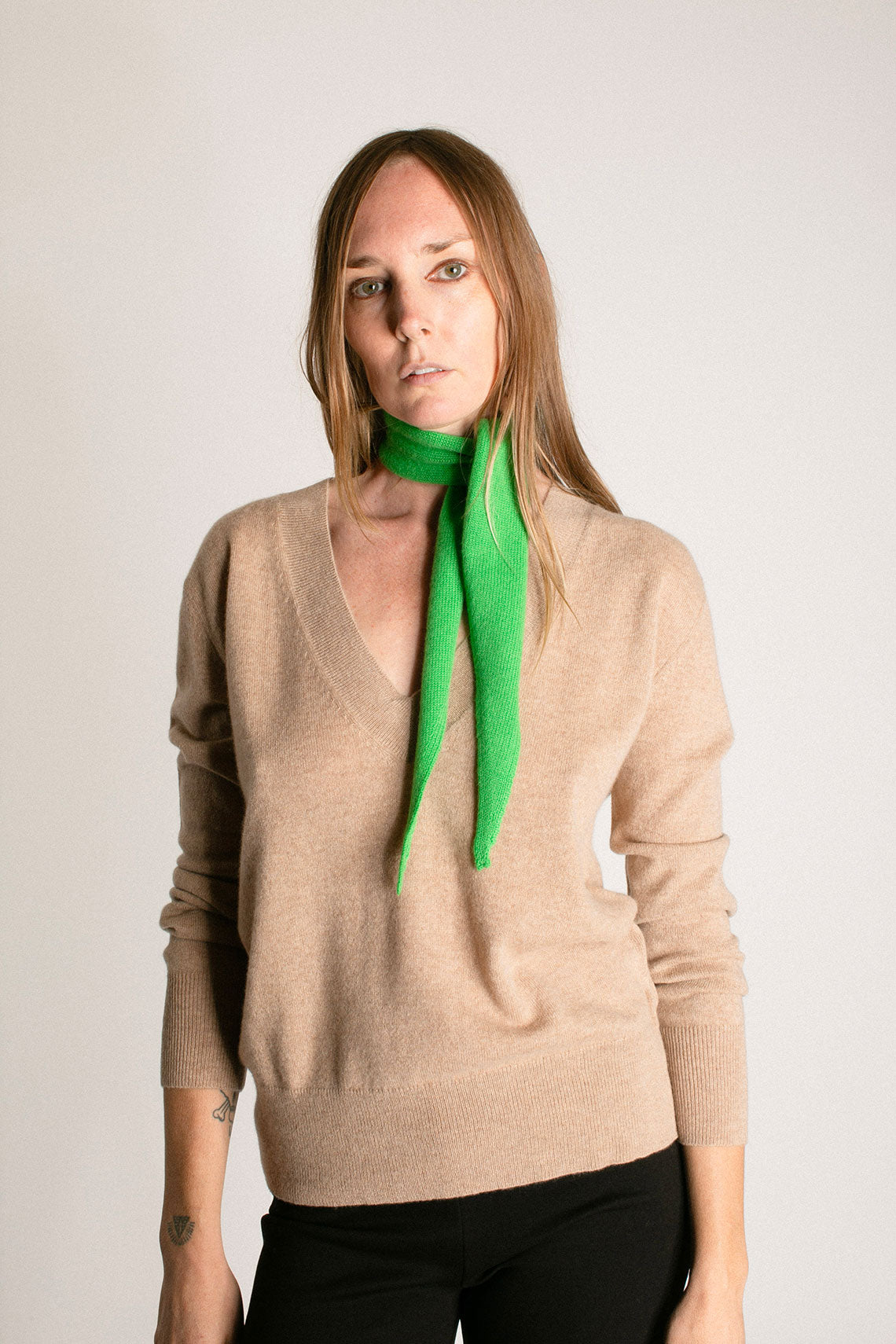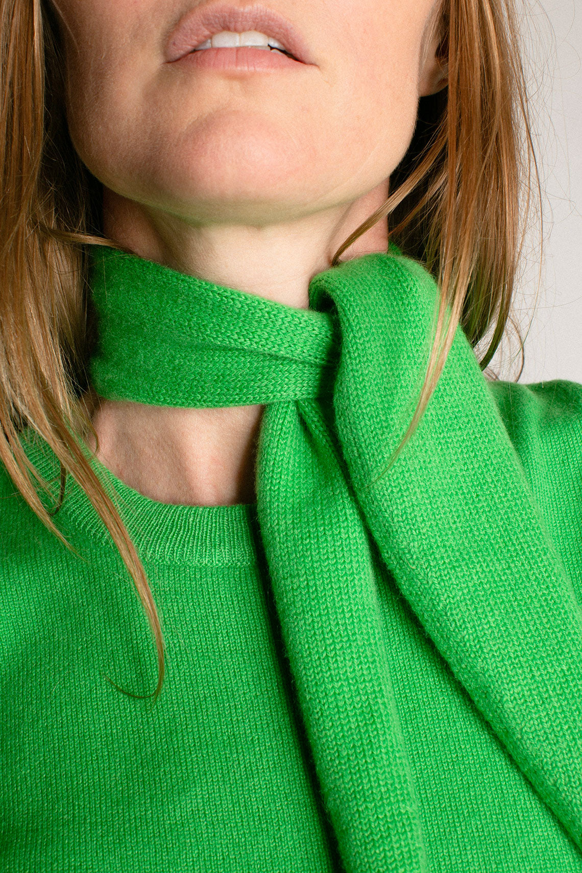 Pure cashmere mini scarf with a slim, elongated silhouette allows for effortless styling. Tie it neatly around the neck or draped casually over the shoulders. Fabric is 100% Mongolian cashmere. Scarf is 43" long.