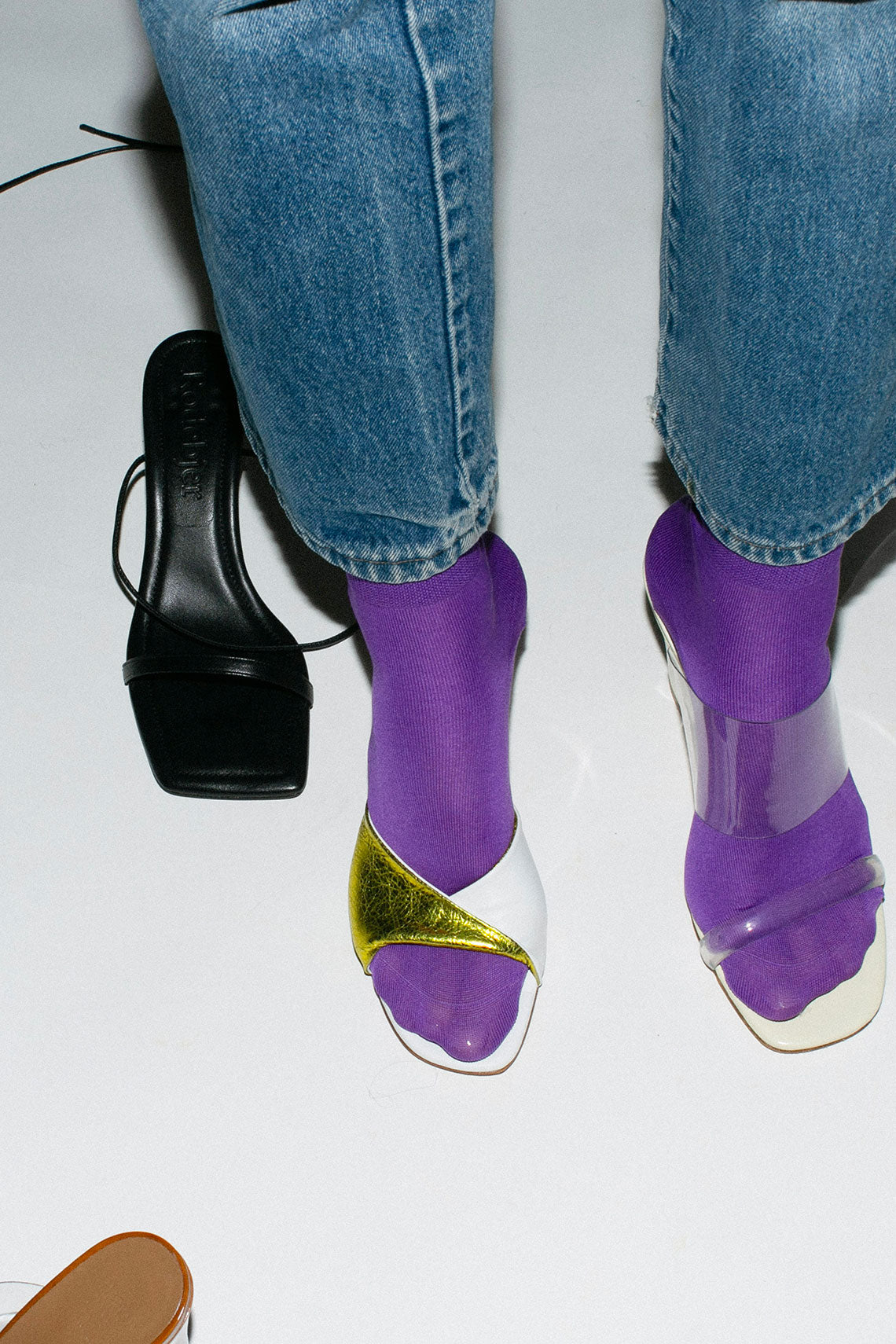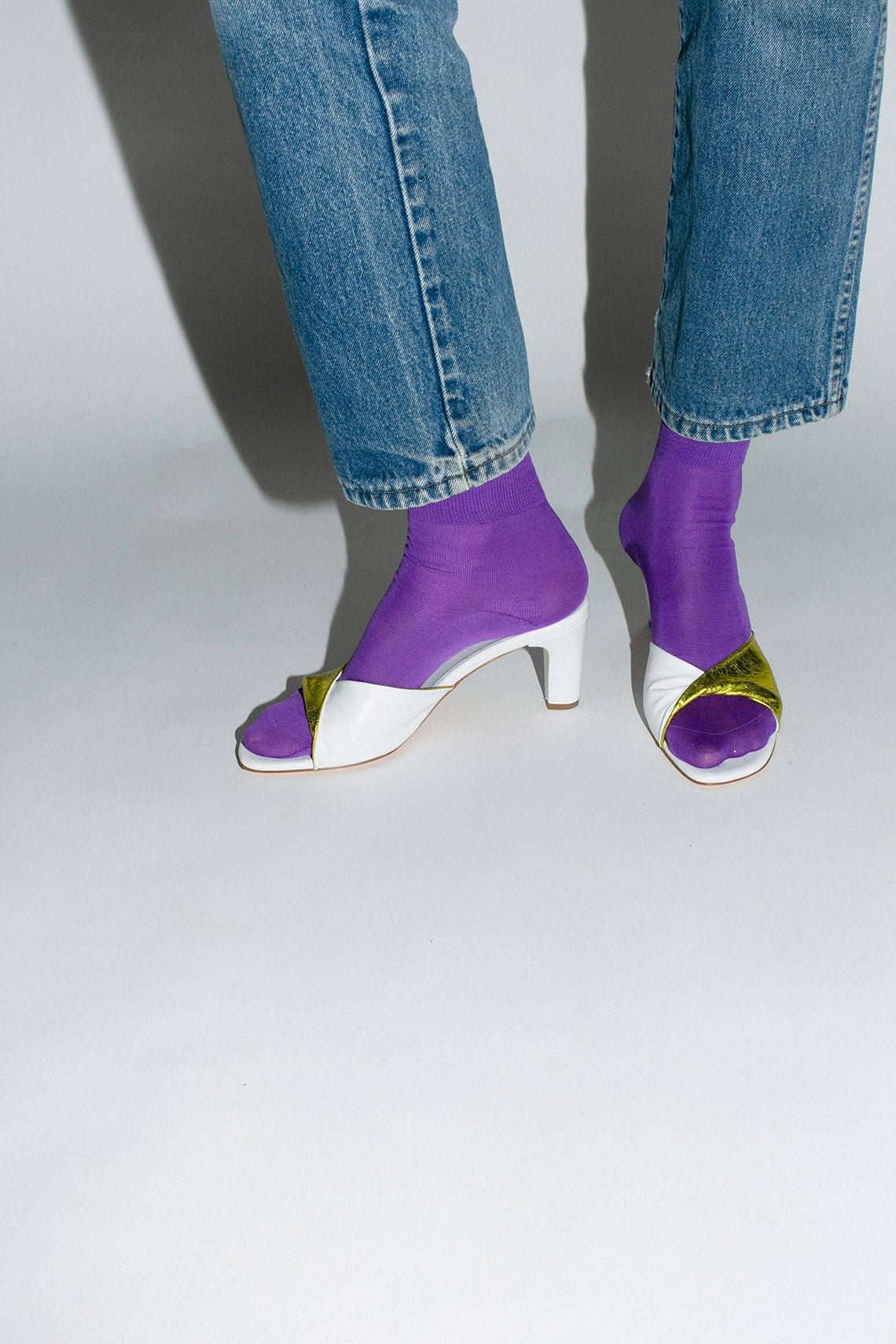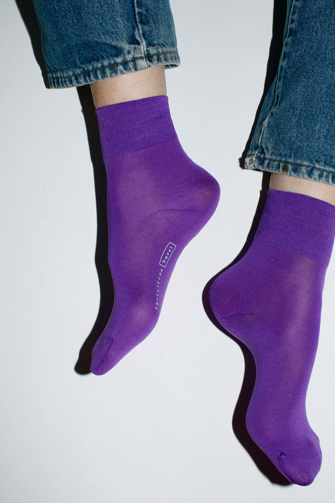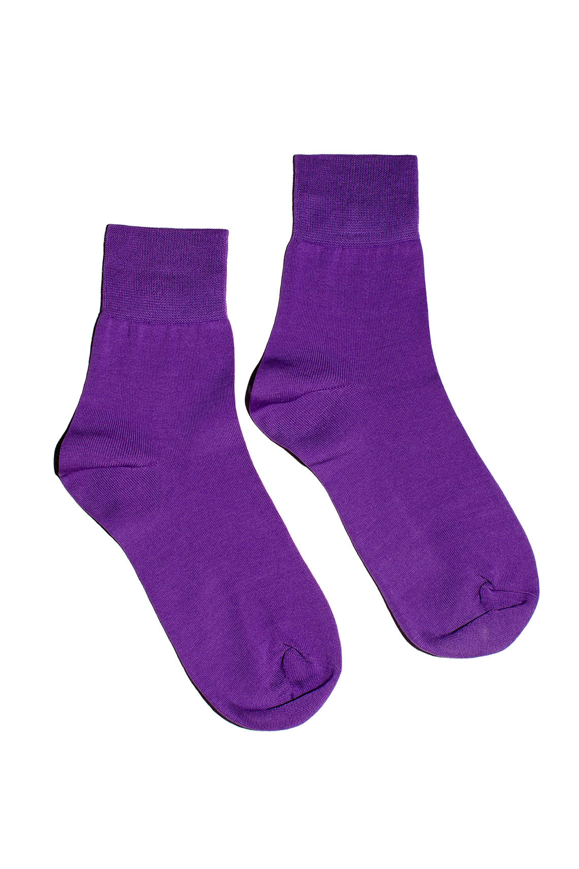 Essential everyday crew sock with a wide ribbed cuff that hits right above the ankle. Fabric is a mercerized cotton. Available in a variety of colors.