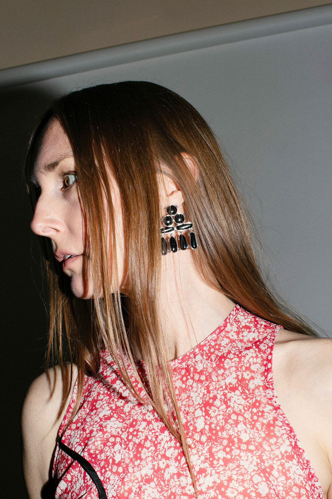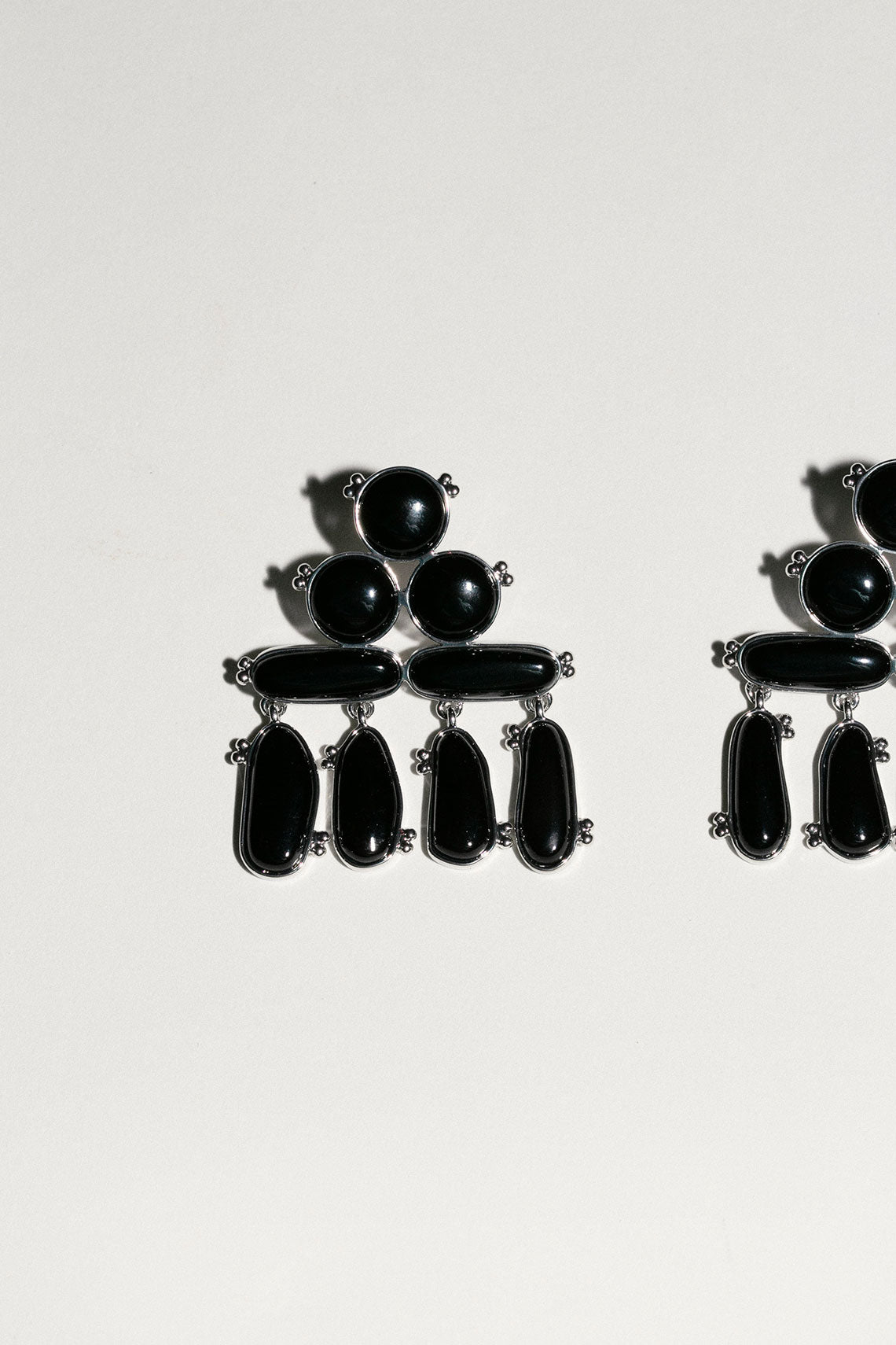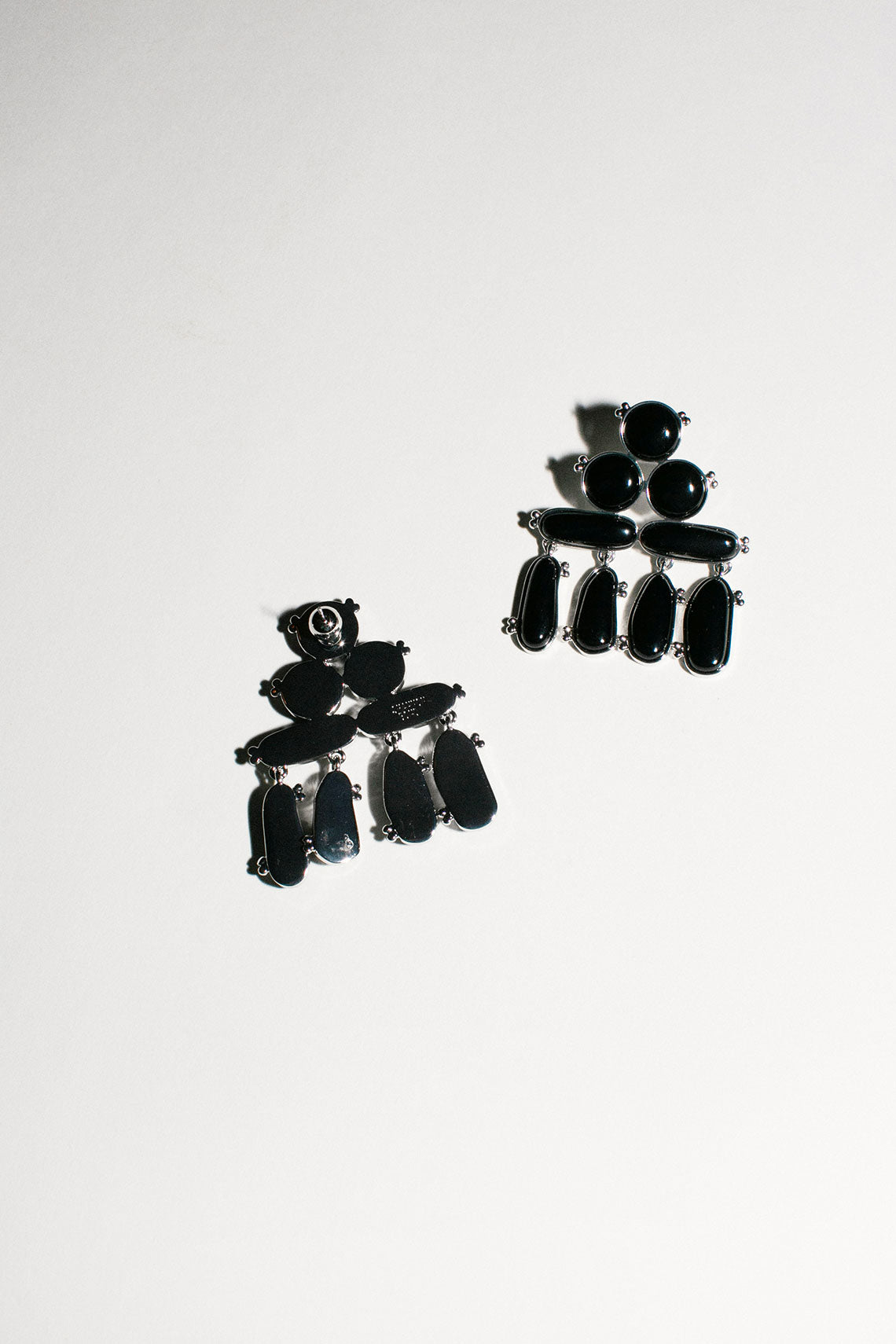 The Ophelia Earrings in black onyx natural stone and PVD-plated brass.