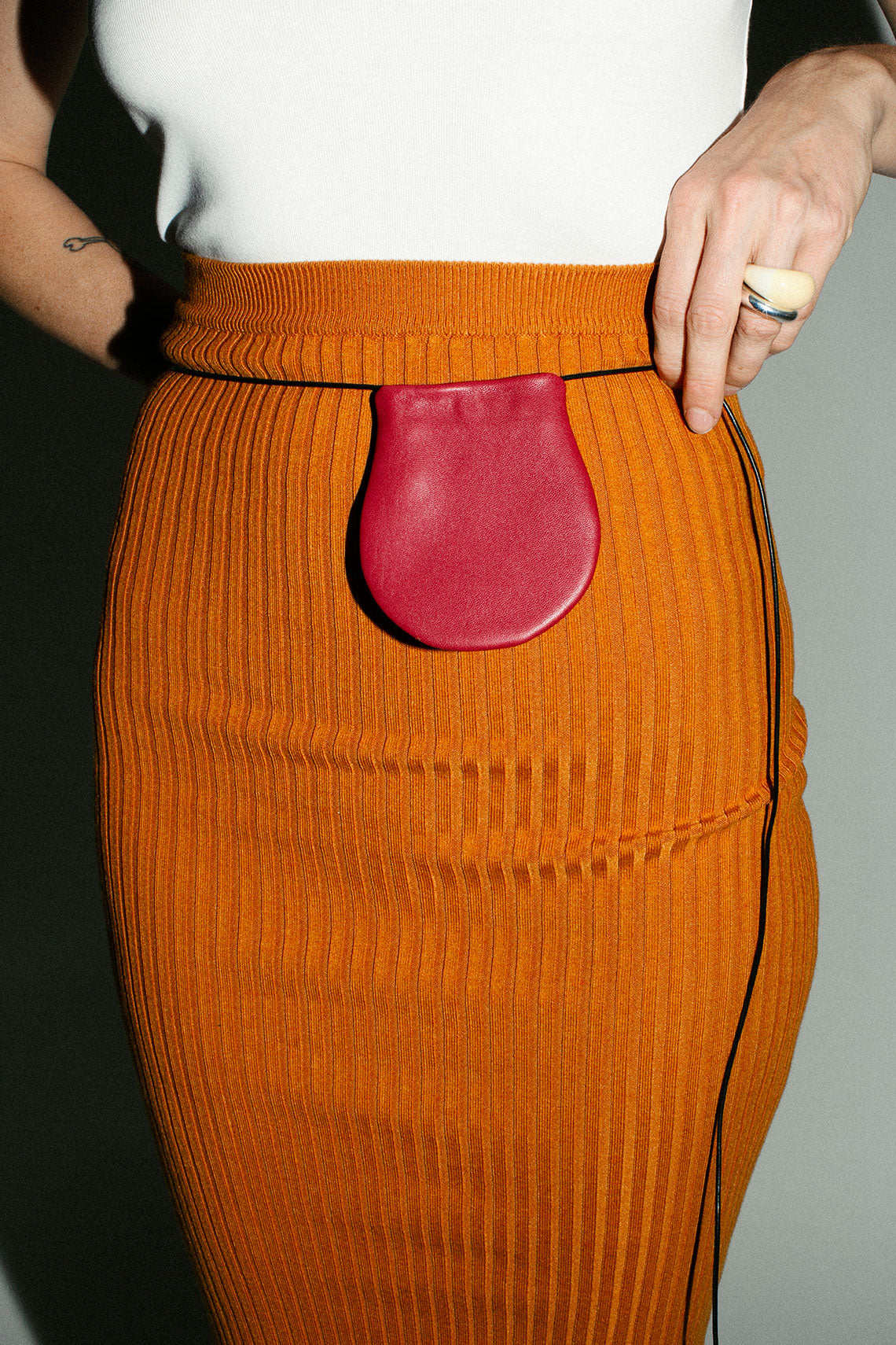 Mini pouch crafted from Italian nappa leather. Holds the mini's, like lip balm, credit card, and key. Magnetic closure, adjustable leather cord, and a hidden keyring. Made in spain. Measures: 3.5" x 4.3", strap length: 27.5".