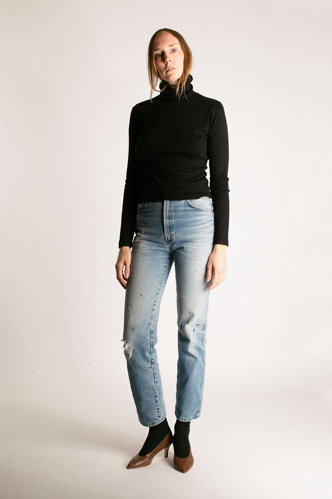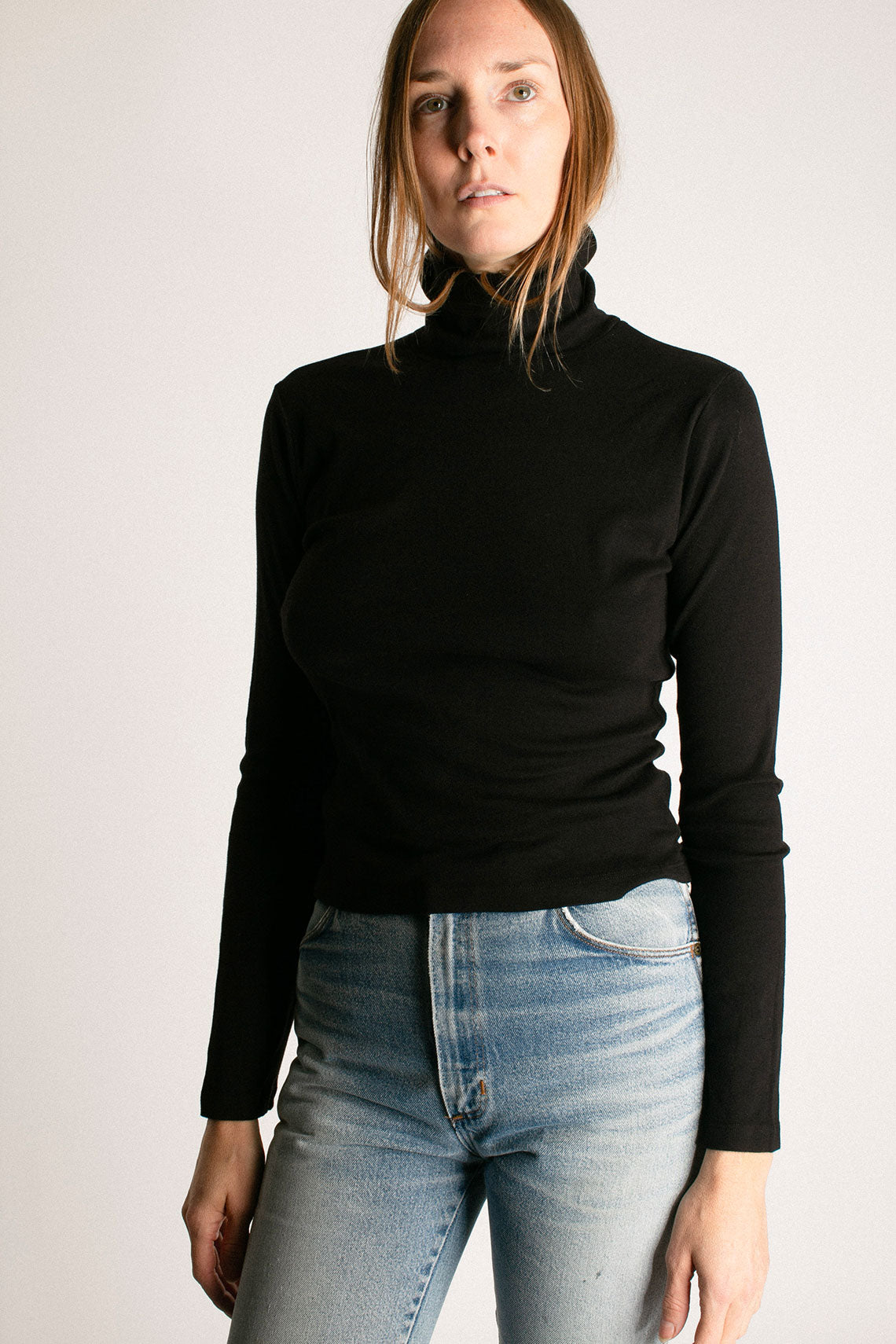 A turtleneck long-sleeve tee made from super soft cotton baby rib. Fabric is 100% cotton.