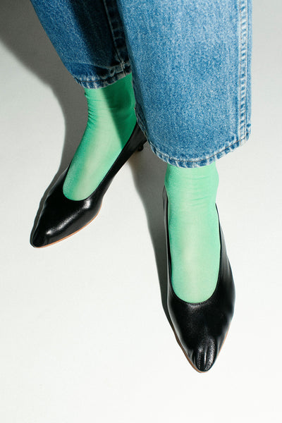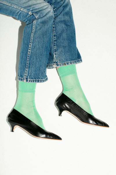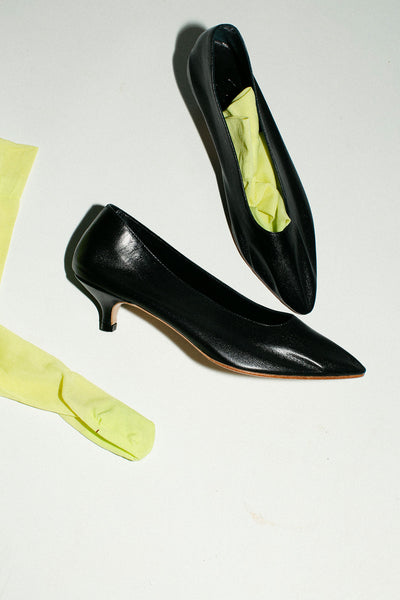 A low heeled pump in the softest unlined kid leather with an all day 1.8” wrapped heel. 100% leather, handmade in Argentina.