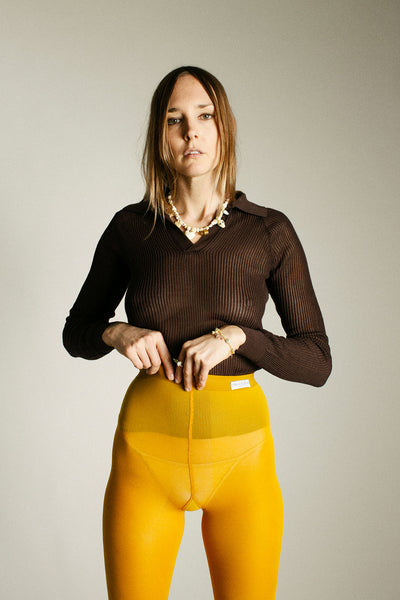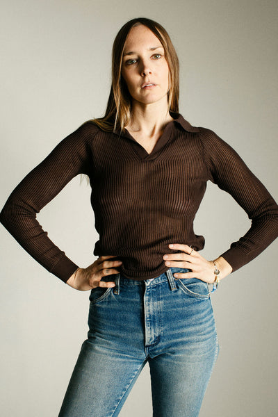 Mako cotton loose knit collared top. Fabric is 100% mako cotton.
