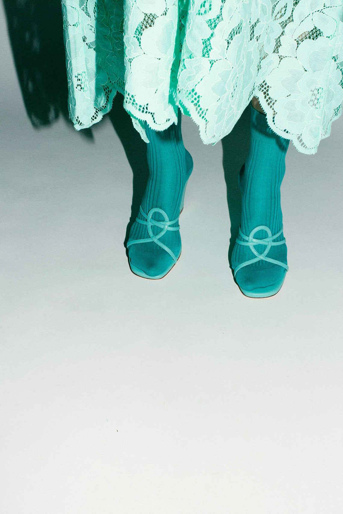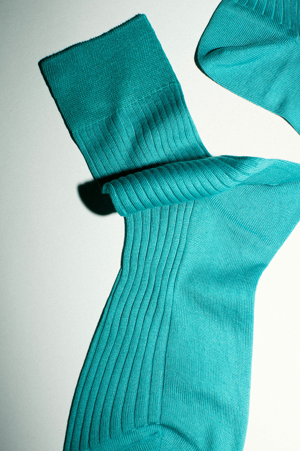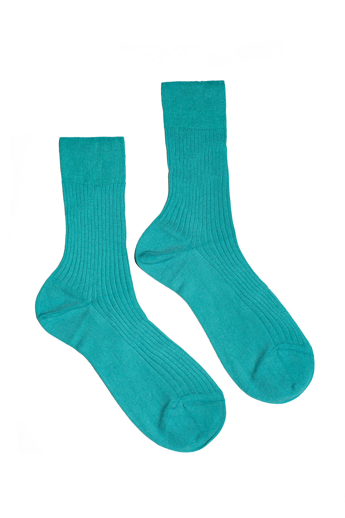 Fine rib cotton socks with a very silky feel. Turquoise fabric is 100% bio cotton. Made in Italy.