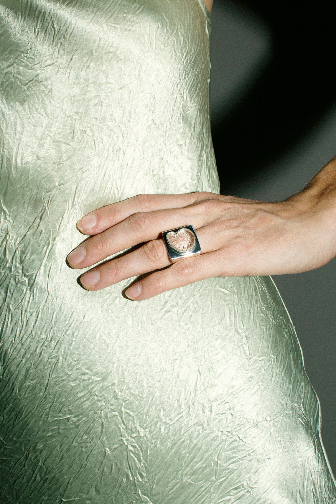 Crystal Carved Shell Ring