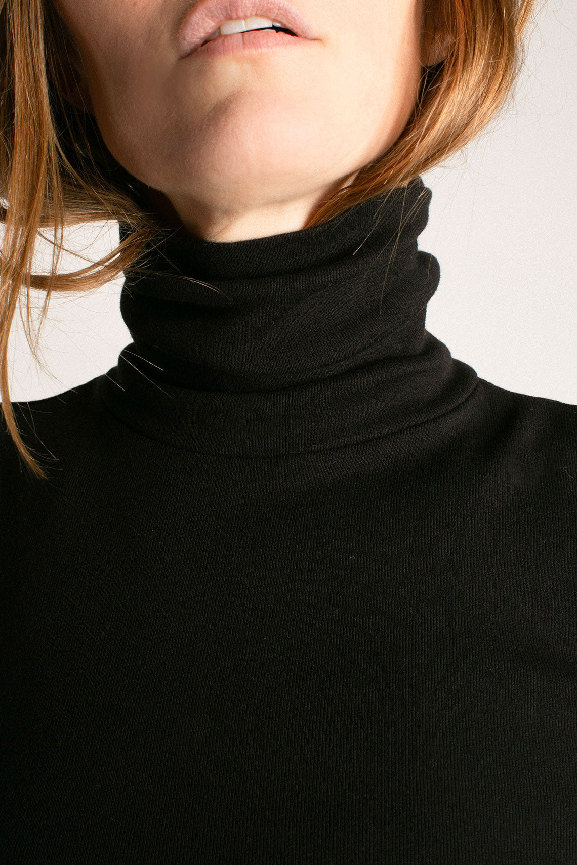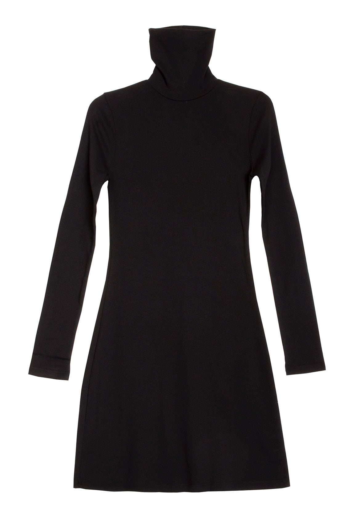 Long sleeve turtleneck mini dress based on the Gil Rodriguez Bellevue Tee. Baby rib fabric is 100% cotton. Made in the USA.