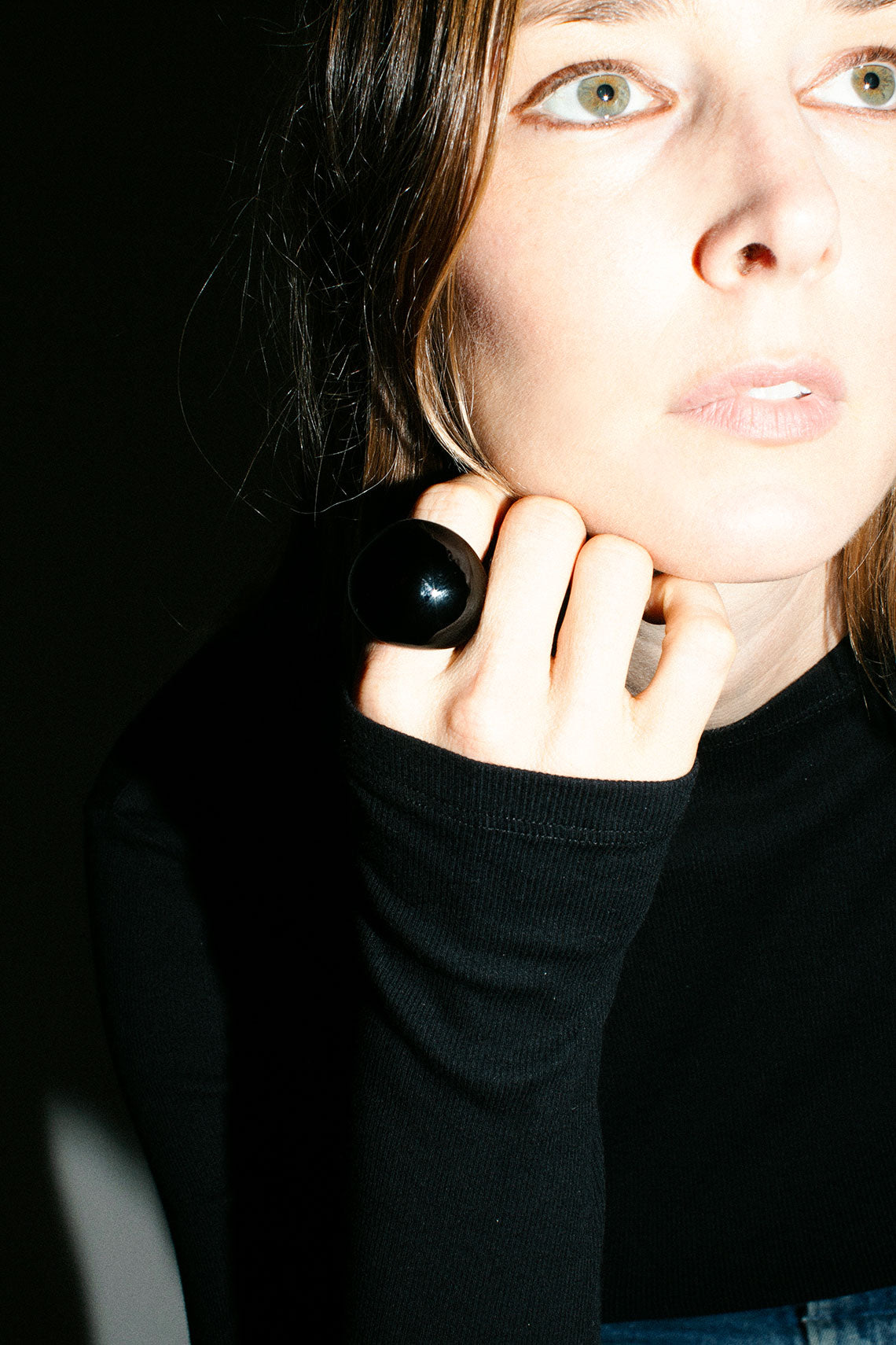 Opaque Murano glass ring, handmade in Italy and kiln fired for durability. The band bulges at the top and tapers slightly around the finger.  Bulb is approximately 1.25" long and 1" wide.