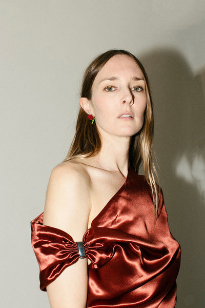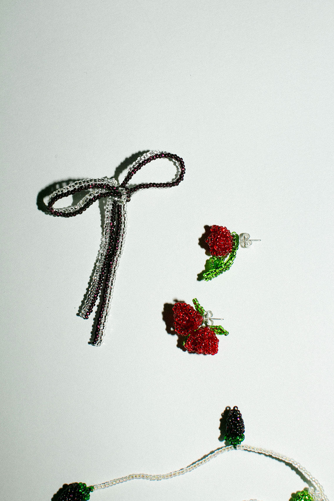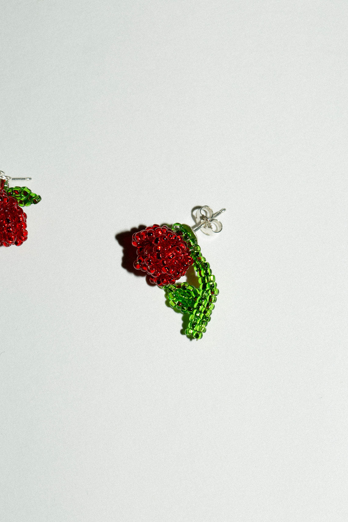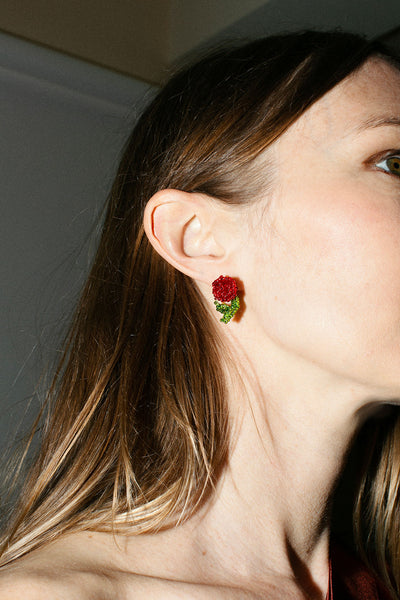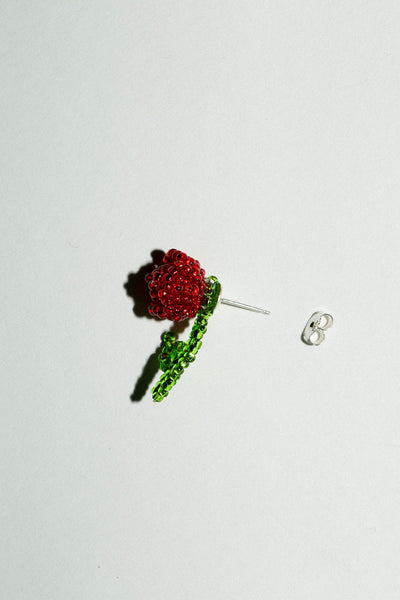 Rose shaped glass beads with 925 sterling silver ear stick. Length: approximately 1.18". Artisan, handmade in Guatemala with practices that avoid excess waste and exceed fair trade.