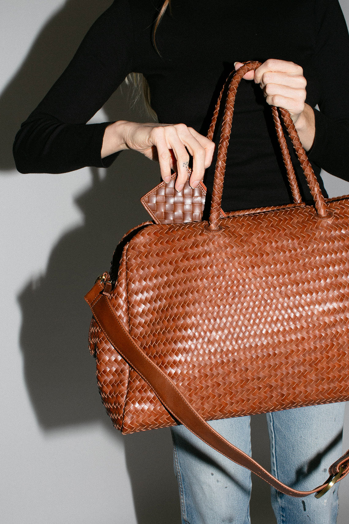 Woven leather slim, minimalist wallet to hold your essentials. Features even card slots, a zip pouch for change, and a pocket to tuck away loose bills. 6.5” x 3.5”