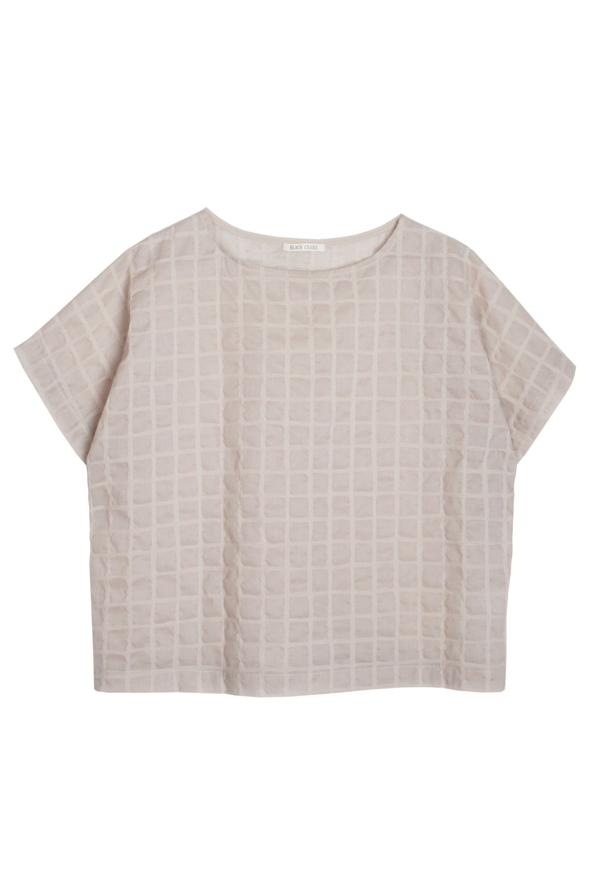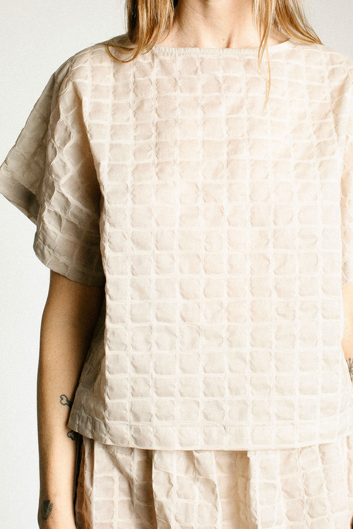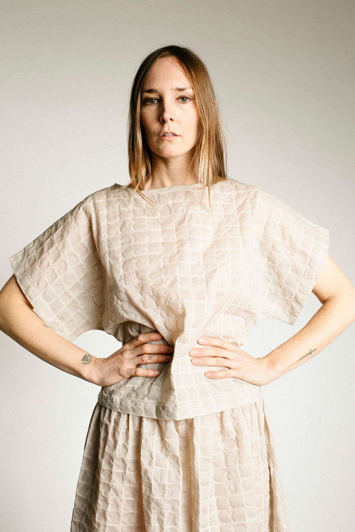 Boxy & slightly sheer crew neck top. Ripple fabric is 100% Japanese cotton. Made in the USA.