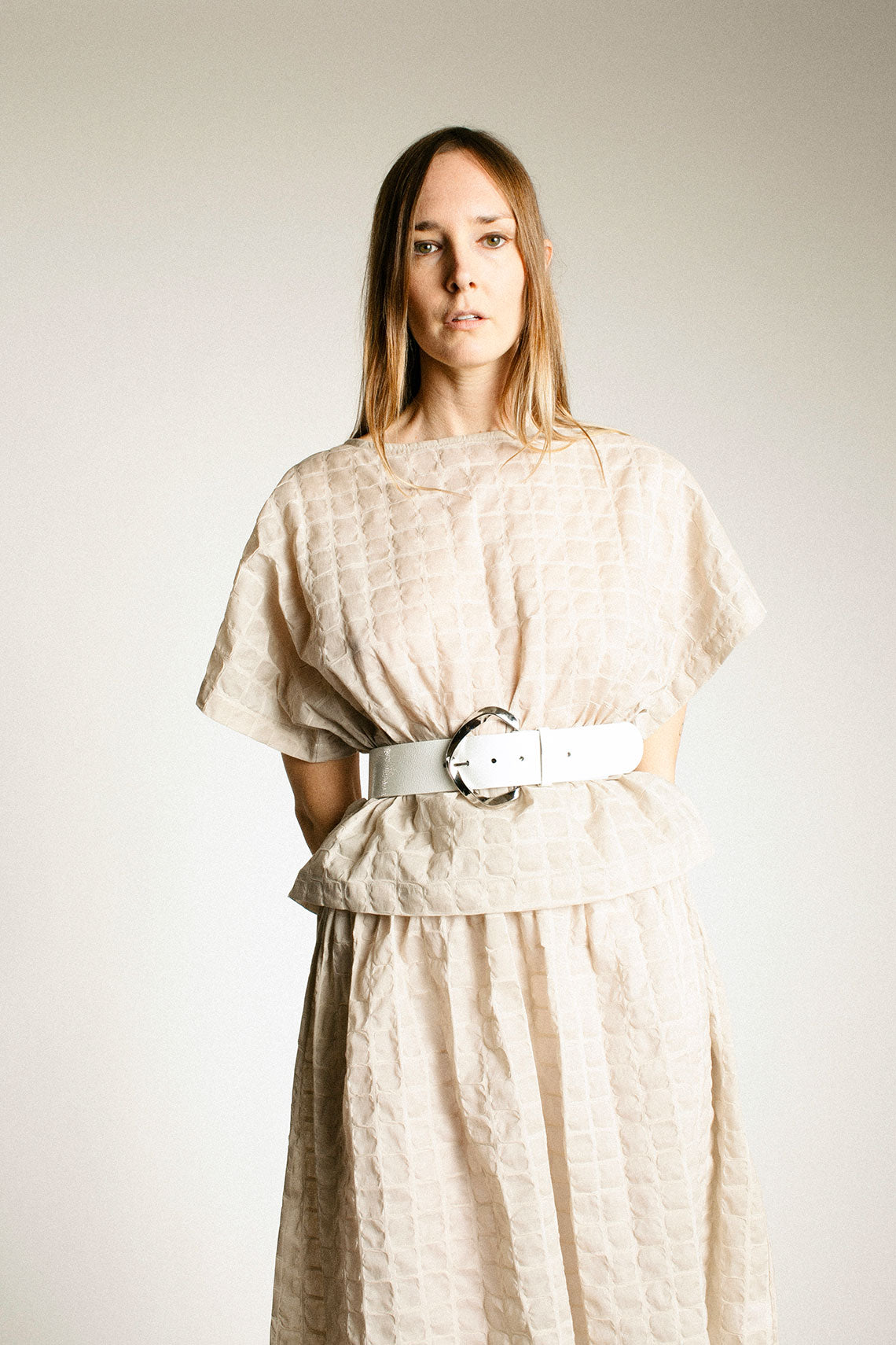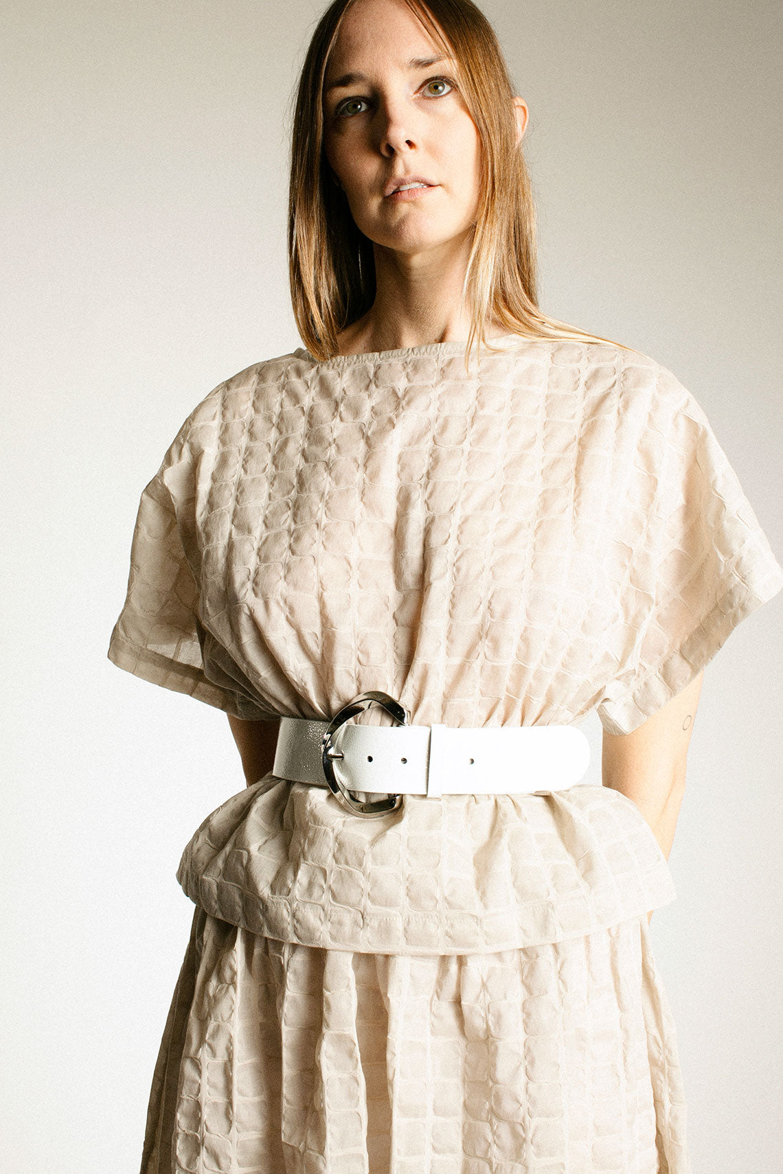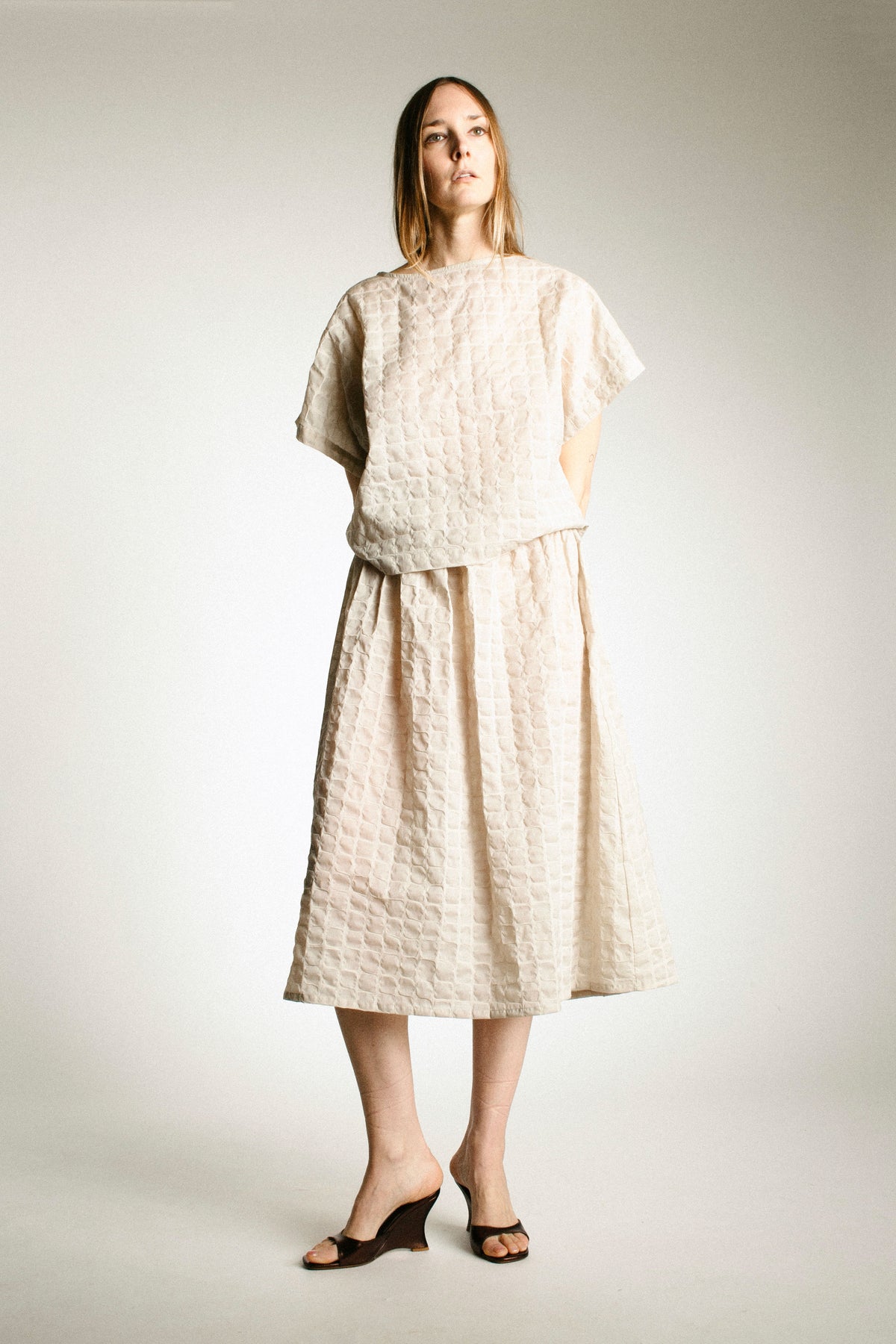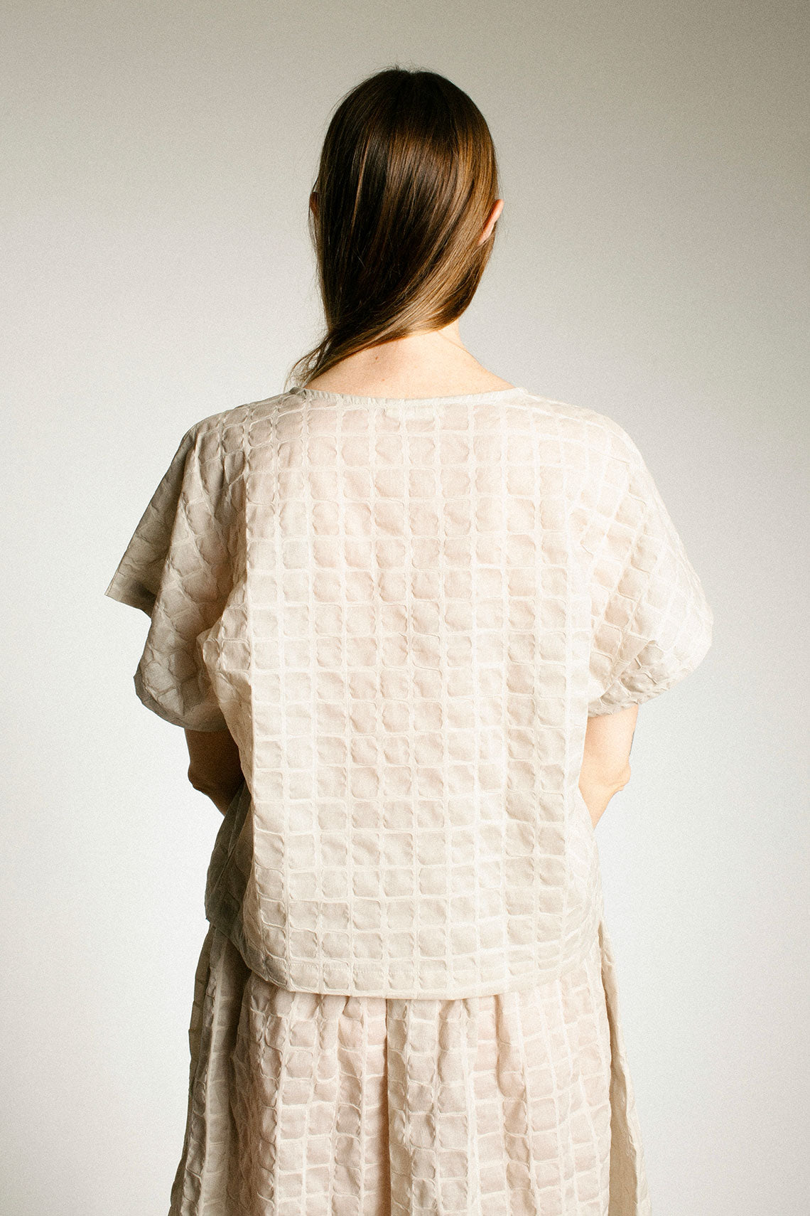 Boxy & slightly sheer crew neck top. Ripple fabric is 100% Japanese cotton. Made in the USA.